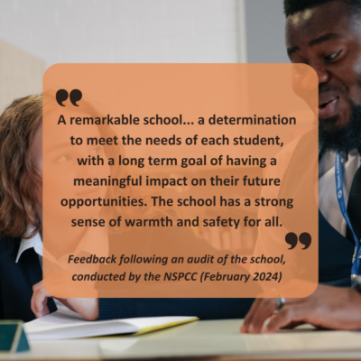 "A remarkable school... a determination to meet the needs of each student, with a long term goal of having a meaningful impact on their future opportunities. The school has a strong sense of warmth and safety for all."